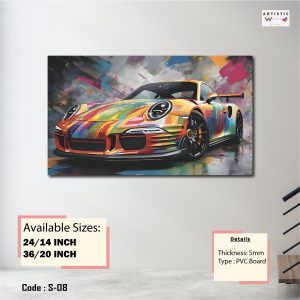 Abstract Porsche GT3 Wall Art – Vibrant Sports Car PVC Board Decor