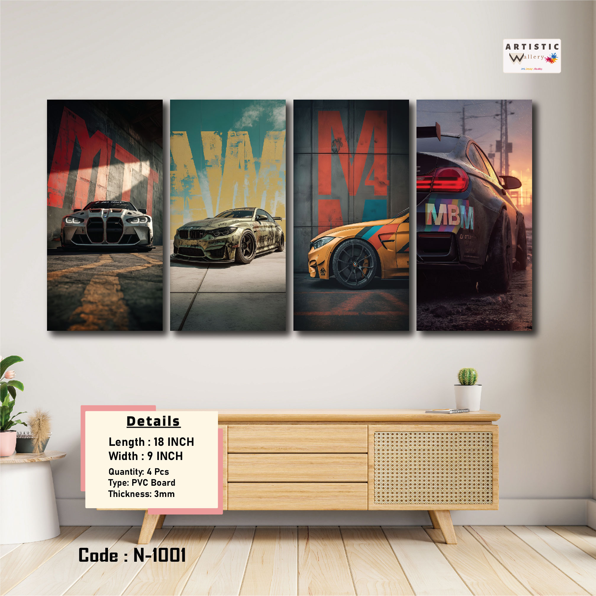 Bring the power and style of high-performance racing into your space with this BMW M4 inspired 4-panel wall art set. Designed for car lovers and modern interiors, this artwork features bold racing visuals, vibrant colors, and sharp HD print quality that instantly transforms any room into a stylish automotive gallery.