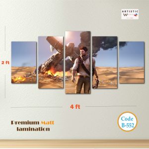Uncharted 3 Nathan Drake Desert Plane Crash Wall Art – 5-Panel Premium Matte HD Print