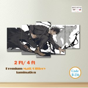 Demon Slayer Kyojuro Rengoku Flame Hashira 5-Panel Wall Art – Premium Matte HD Print on 3mm PVC Board (Code B-573)
