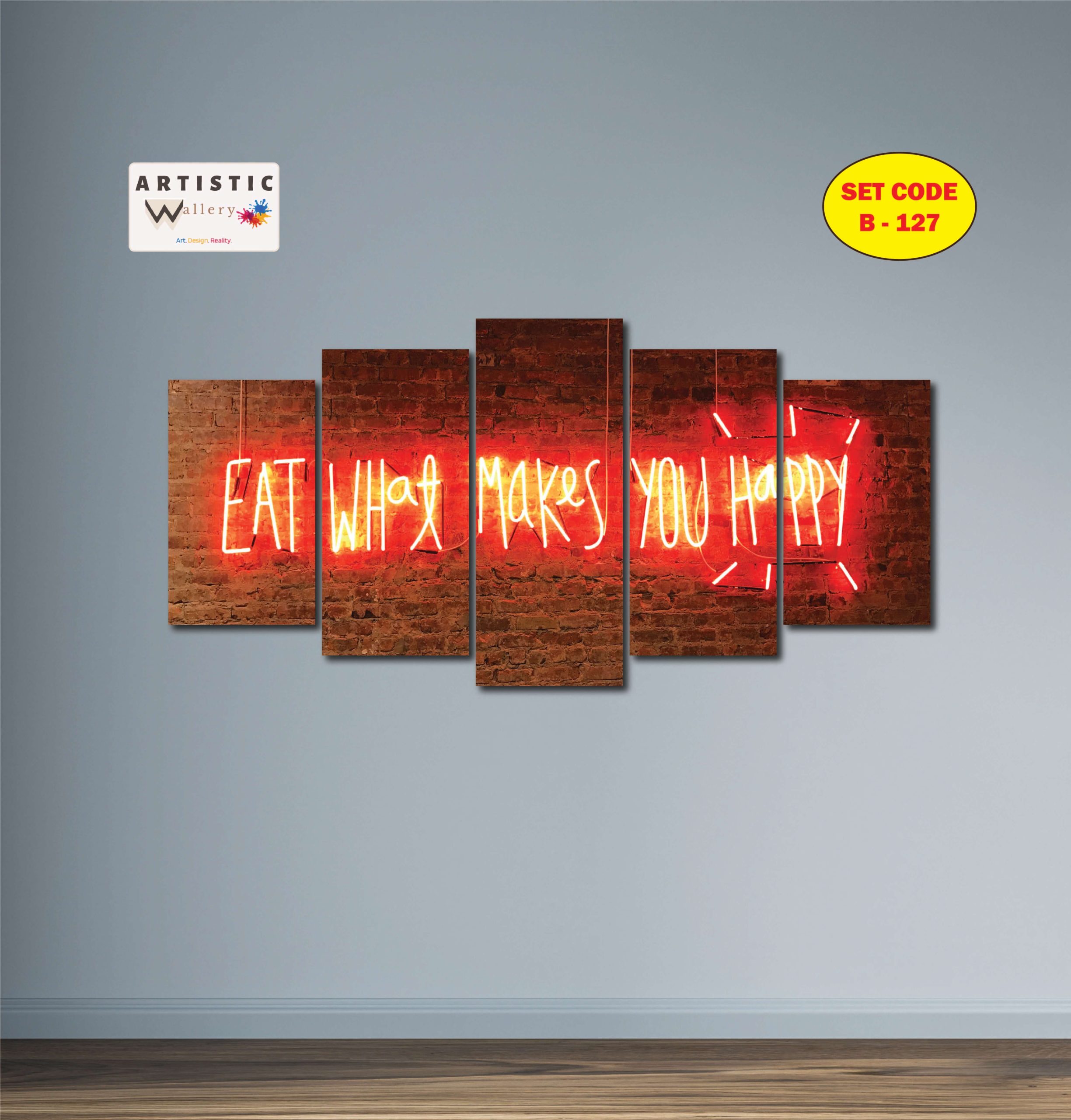Artistic Wallery | “Eat What Makes You Happy” 5-Piece Neon Sign Wall Art (B-127)