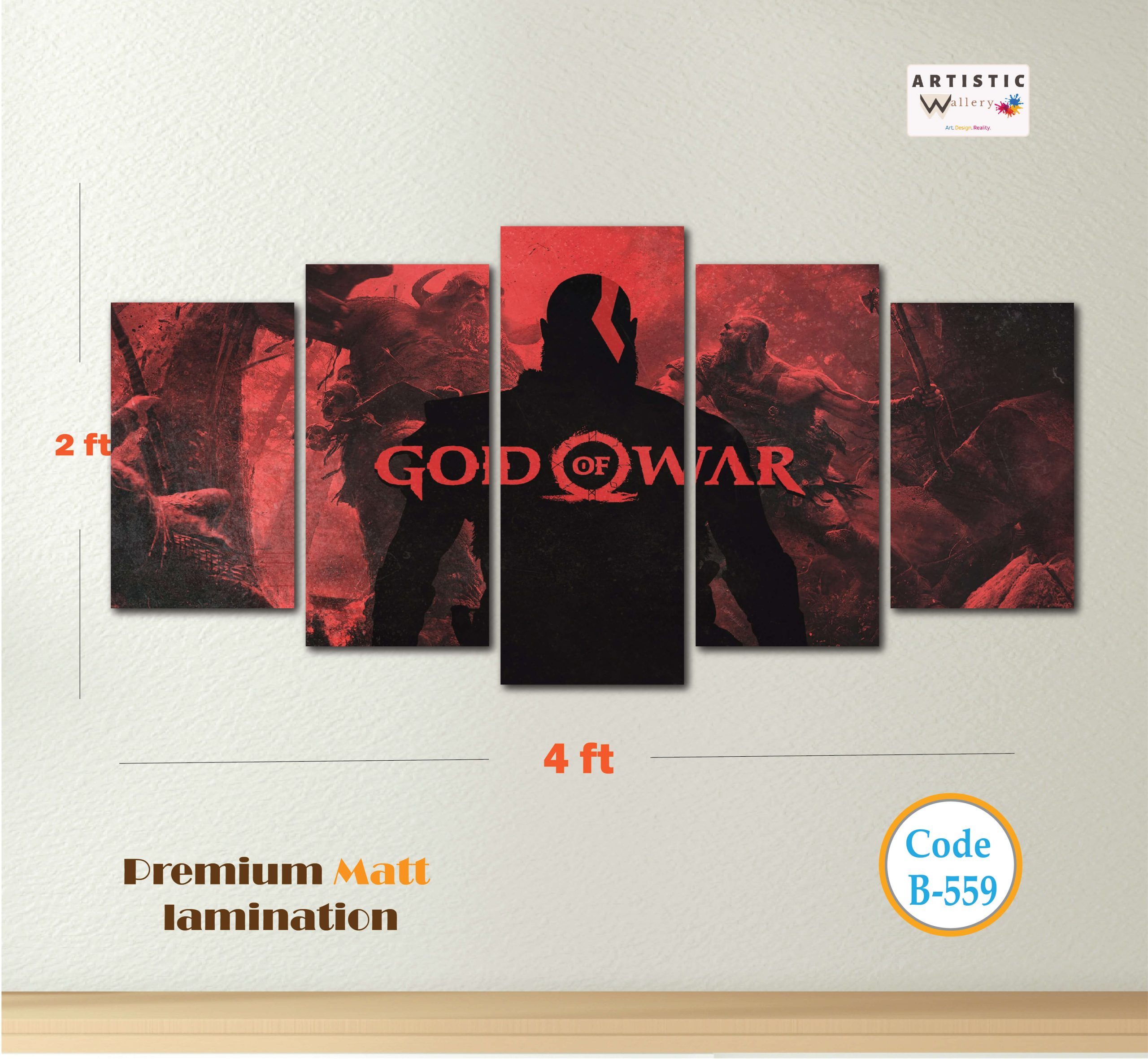 God of War Kratos “Ghost of Sparta” Crimson 5-Panel Wall Art – Premium Matte HD Print