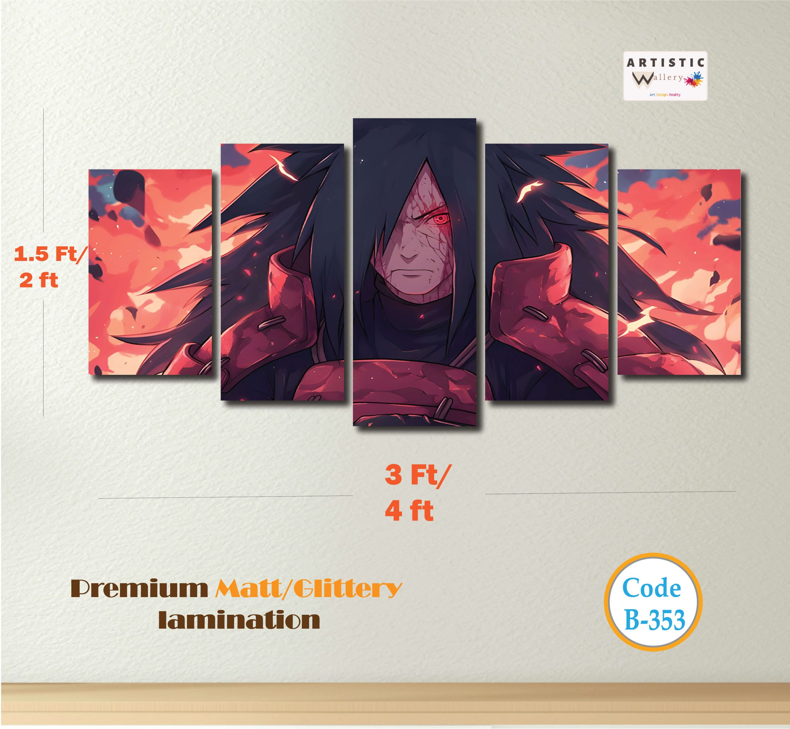 Madara Uchiha Reanimated | Premium 5-Panel Anime Wall Art Set (B-353)