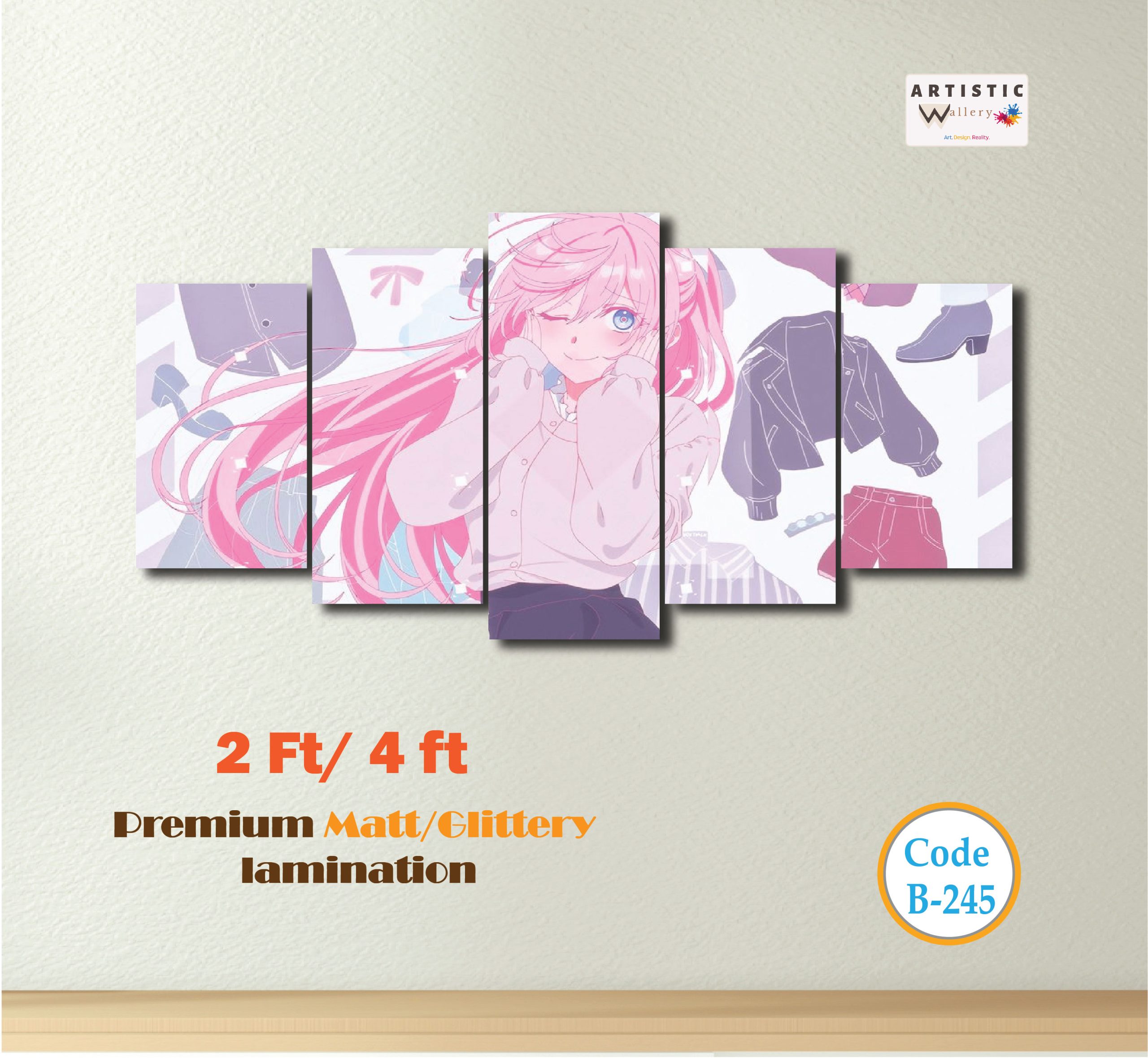 Add a touch of charm and modern aesthetic to your space with the Shikimori “Perfect Style” 5-panel wall art. Featuring the multi-talented Shikimori from Shikimori’s Not Just a Cutie, this design showcases her iconic pink hair and stylish vibe against a soft, pastel-themed fashion backdrop. It is the perfect decor choice for fans who love clean, aesthetic visuals and a touch of “kawaii” sophistication.