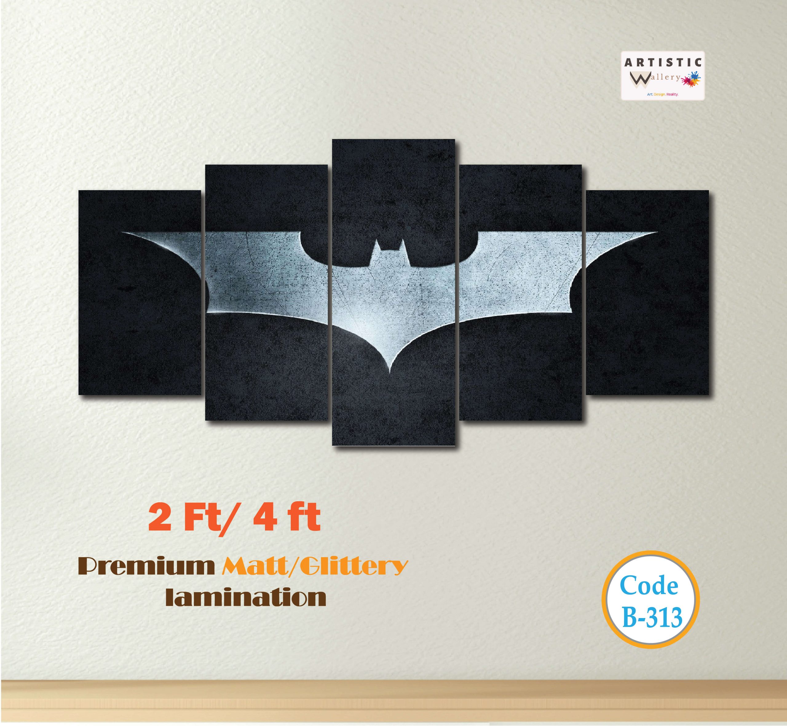 Bring the justice of Gotham City to your walls with this sleek Batman 5-panel wall art. Featuring the iconic metallic Bat-symbol against a textured, dark stone-style background, this set offers a sophisticated and powerful look for your office, gaming room, or living space.
