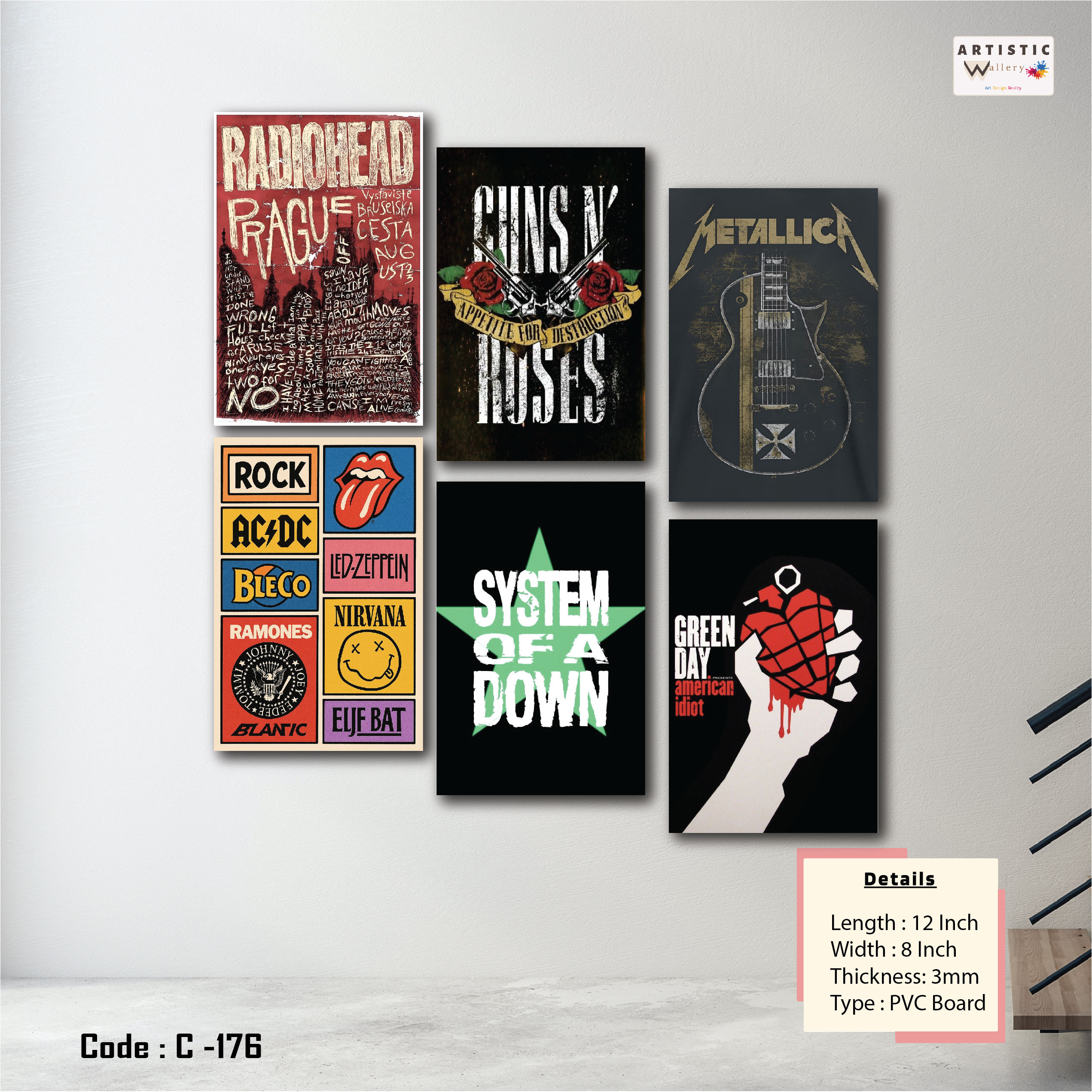 Classic Rock Vintage Poster Set – 6-Piece Premium PVC Panel Series (Code: C-90)