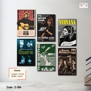 Transform your walls into a tribute to musical greatness with the C-92 Premium Collection. This set features six high-resolution prints on durable PVC board, capturing the definitive imagery of rock, grunge, and Britpop.